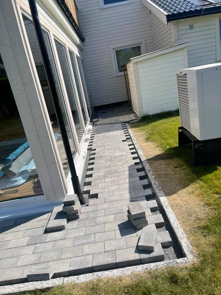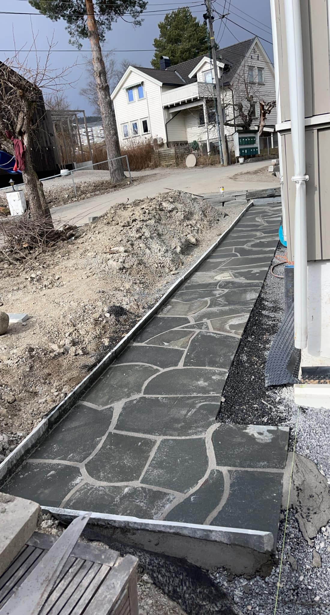 En steinlagt uteplass er nesten vedlikeholdsfri – forutsatt riktig grunnarbeid. Vi hjelper deg med steinlegging, murer og kantstein for et varig og vakkert resultat.