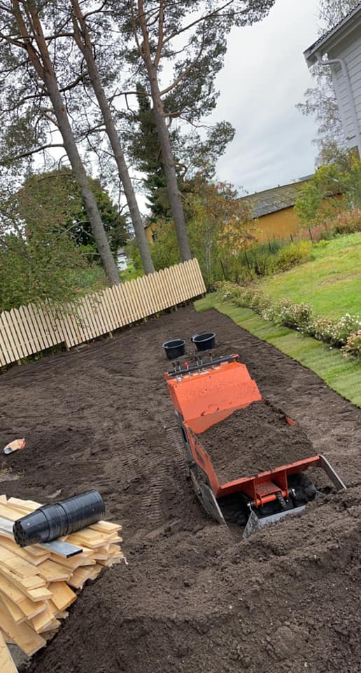 Vi utfører alt fra tomtegraving ved nybygg og tilbygg til planering, drenering, veibygging og oppføring av steinmurer. I tillegg tilbyr vi tjenester som utgraving av tomter, oppbygging av hager, jordforbedring, grøfting og anlegg av veier.