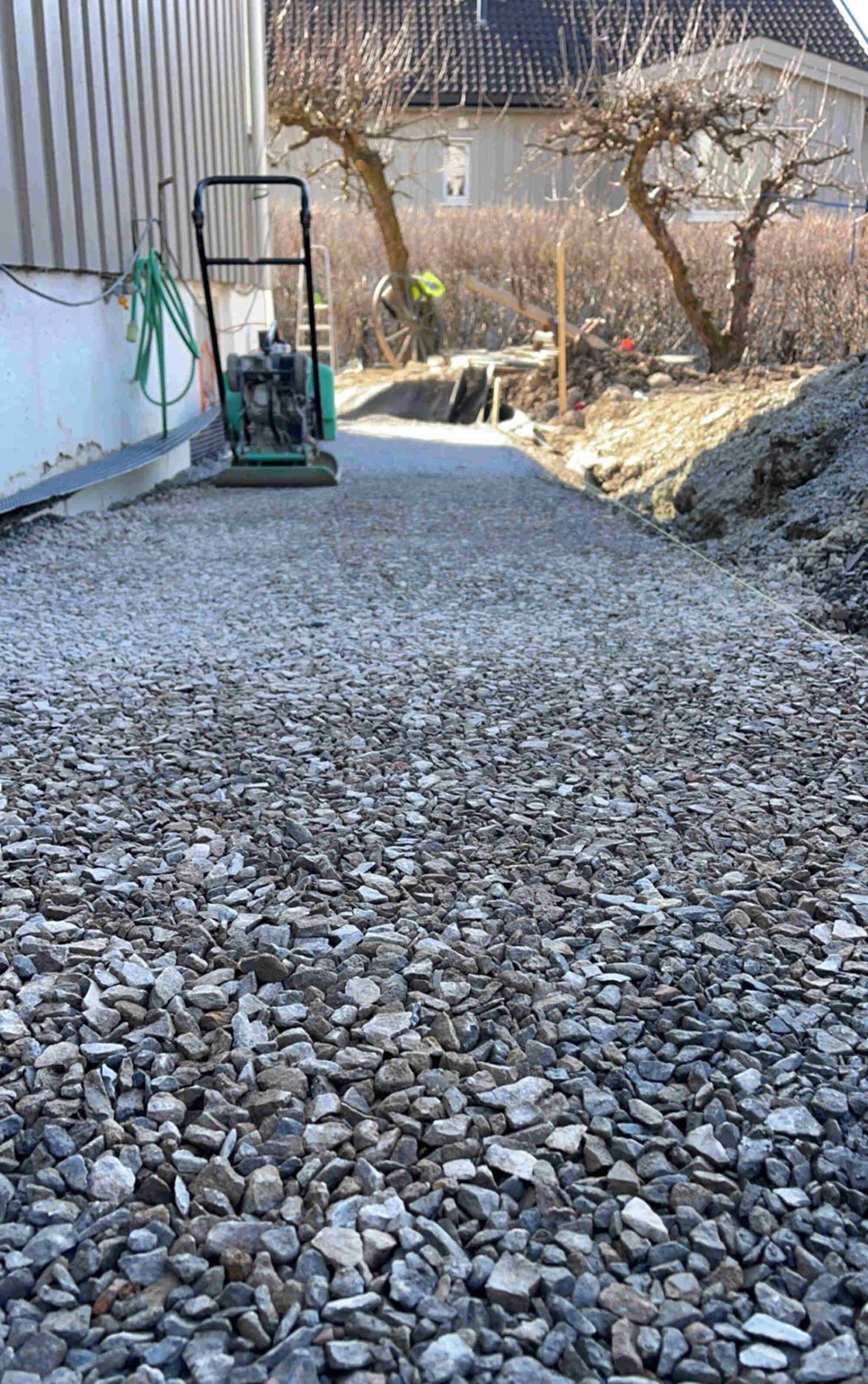 Vi utfører graving, planering, granittarbeid, kantstein, støttemurer samt opparbeidelse og vedlikehold av grøntanlegg.